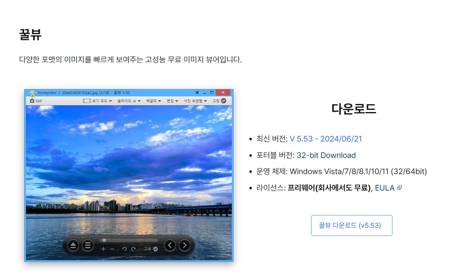 꿀뷰(Honeyview)는 빠르고 가벼운 이미지 뷰어 프로그램으로, 다양한 이미지 포맷을 지원하며 간단한 편집 기능까지 제공하는 소프트웨어입니다. 특히 압축 파일 내 이미지를 풀지 않고도 바로 볼 수 있어 만화나 사진을 많이 다루는 사용자에게 적합합니다. 이번 글에서는 꿀뷰의 다운로드 방법, 주요 기능, 그리고 활용 팁에 대해 자세히 알아보겠습니다.