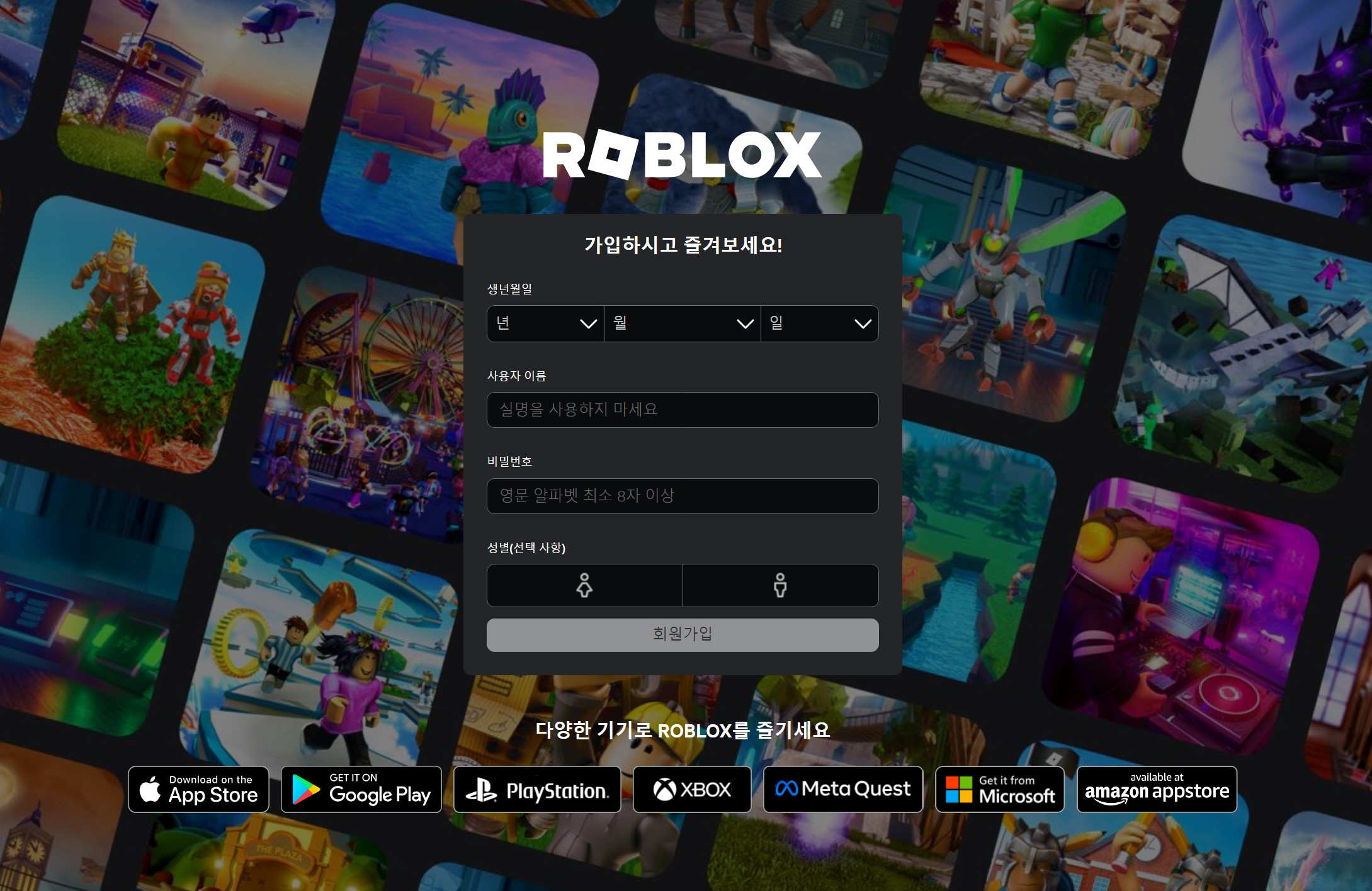 로블록스 공식 웹사이트로 이동합니다. - 회원가입 또는 로그인
