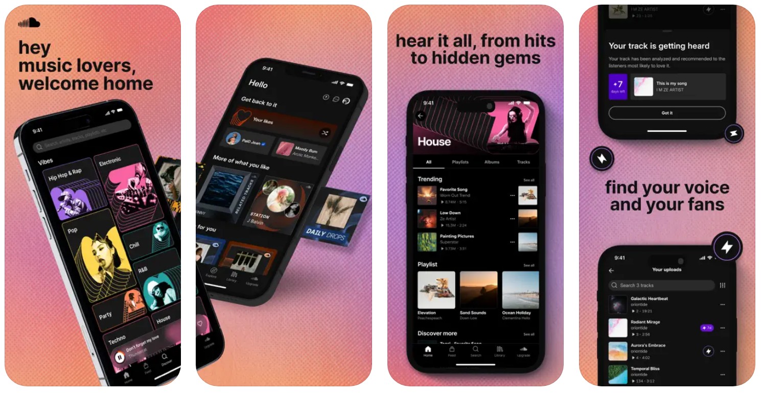 사운드클라우드(SoundCloud)는 전 세계 아티스트와 청취자를 연결하는 인기 음악 스트리밍 플랫폼입니다. 사용자는 자신의 음악을 업로드하거나 다양한 장르의 음악을 들을 수 있습니다. 일부 콘텐츠는 다운로드도 가능합니다.