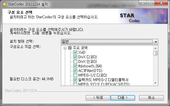 • 필요한 코덱이 설치되지 않은 경우, 스타코덱 설치 옵션에서 관련 코덱을 추가로 선택하세요.