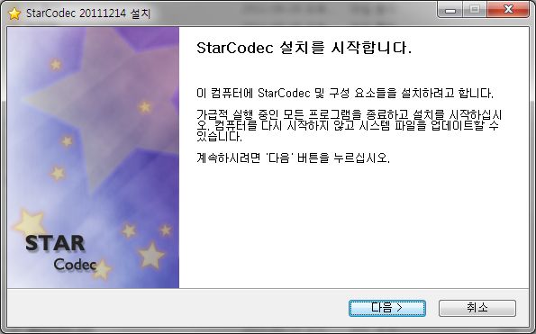• 기존에 설치된 다른 코덱 팩을 모두 제거한 후 스타코덱을 설치하세요.