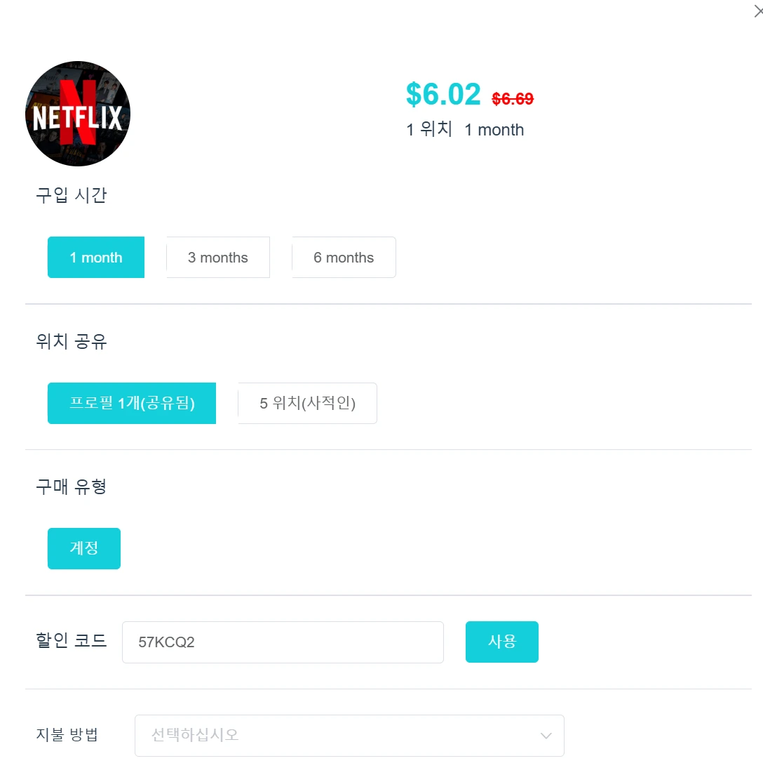 - 1개월: $6.69 → 할인코드 적용 시 $6.02