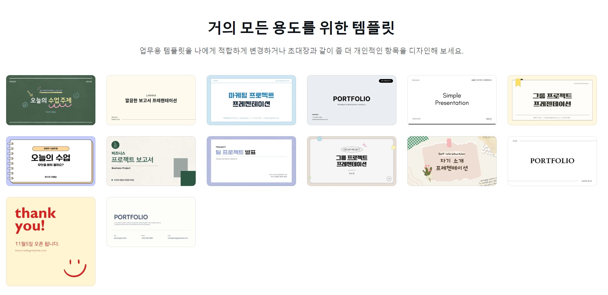 - 다양한 카테고리의 무료 및 유료 템플릿을 제공해 빠르고 효율적인 작업이 가능합니다.