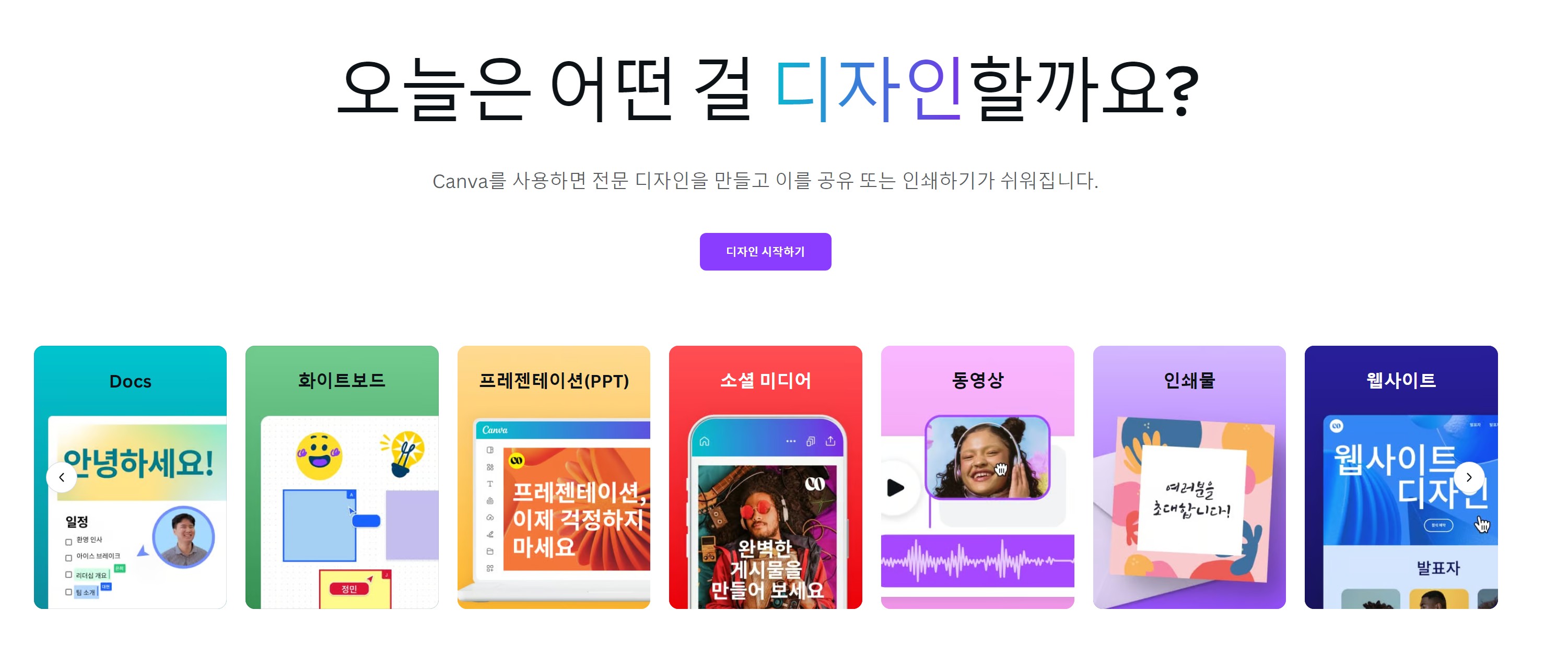 캔바(Canva)는 손쉽게 다양한 디자인 작업을 할 수 있는 웹 기반 그래픽 디자인 도구입니다. 포스터, 로고, 프레젠테이션, 소셜 미디어 콘텐츠 등 다양한 작업을 지원하며, 초보자도 전문가처럼 멋진 결과물을 만들 수 있습니다.