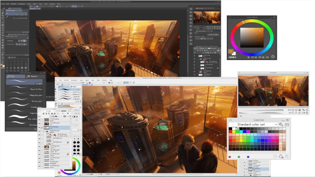 - 일러스트, 만화, 웹툰, 애니메이션까지 한 프로그램에서 모두 작업할 수 있습니다.
